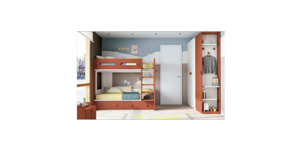>> Litera 2 bañeras de 90×190, con quitamiedos y escalera integrados, con 2 cajones con ruedas. Barra de acero de refuerzo bajo cama superior. Un peldaño de la escalera es alargado, convirtiéndose en un estante con luz LED integrada (opcional), y con tomas USB. También disponible con cajones con guías. Otros modelos para escoger. No necesita somieres. Posibilidad de incorporar aireadores en las bañeras.