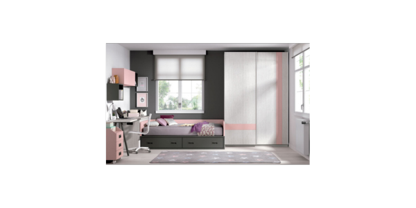 >> Cama nido con 2 grandes cajones con guías, y corona salva-colchón, de 90×190. Disponible también en 105, con 3 o con 4 cajones, o con somier de arrastre. No necesita somier.