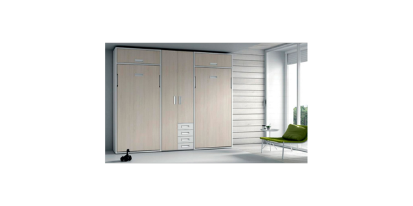 >> Literas abatibles verticales con altillo puerta elevable. Disponibles con puerta lisa o con franjas. Costados de 3 ó 5 cm de grosor. Escalera incluida. Posibilidad de abrir solamente la cama de abajo o las dos. También disponible sin altillo. Arriba colchón de hasta 12 cm de alto. Abajo colchón de hasta 20 cm de alto. Sólo disponible para colchones de 90×190. 2 unidades visualizadas.
