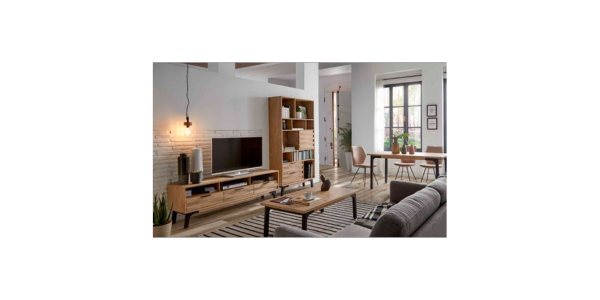 >> Módulo bajo TV de 3 huecos y 3 cajones, con tirador metálico negro mate.